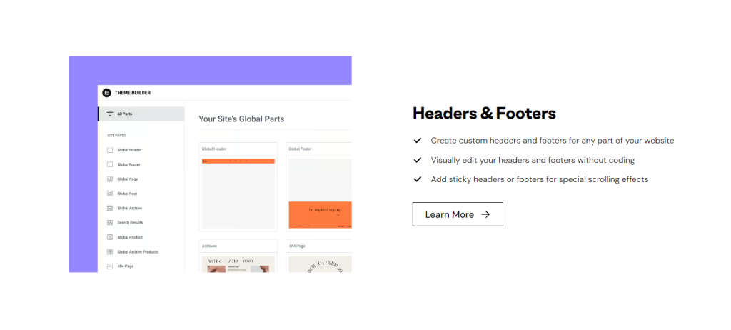 • Design Flexibility — Build unique layouts using pre-built widgets and global templates to keep design consistent.